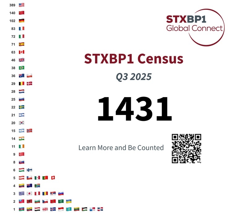 Il censimento STXBP1 è un progetto collaborativo di STXBP1 Global Connect. STXBP1 Global Connect è una rete globale di genitori composta da numerosi gruppi provenienti da tutto il mondo, focalizzata sul miglioramento della vita dei pazienti affetti da STXBP1.
